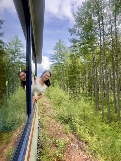 "呜——"汽笛声将我从满洲里拉出,列车驶向大兴安岭的深处。窗外的景色渐渐由城市转为森林,由喧嚣转为静谧。莫尔道嘎的森林小火车像一条玩具蛇,蜿蜒穿行在童话般的原始森林中。阳光透过密林的缝隙,在车厢地板上投下斑驳的光影。孩子们趴在窗边,鼻子紧贴玻璃,发出阵阵惊叹。
