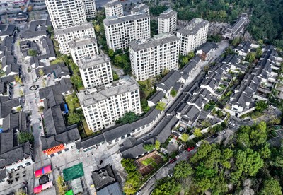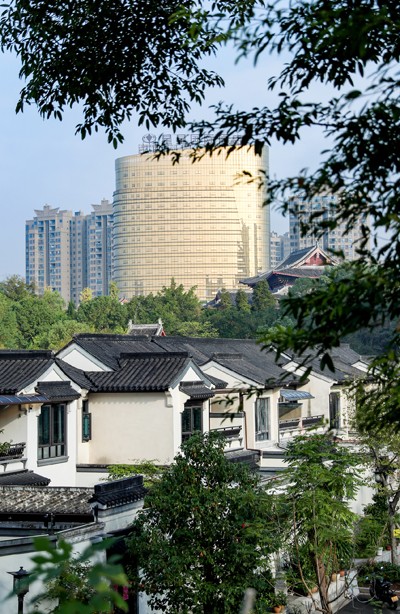 2024年11月5日,四川省广安华蓥市古色古香、文脉悠长的天上街市,与周边的现代建筑互相映衬,使城市显得格外厚重和美。