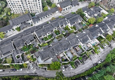 2024年10月29日,四川省广安华蓥市古色古香、文脉悠长的天上街市,在如黛的远山映衬下宛若一幅水墨画。(邱海鹰)