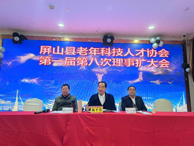 2024年11月19日,屏山县老年科技人才协会在县城文学酒楼会议室召开第一届第八次理事扩大会议。全体理事、部分村干部和中药材种植大户以及企业代表参加会议,经信科技局和科创中心等单位领导到会指导工作;会议由老科协秘书长罗泽辉同志主持。