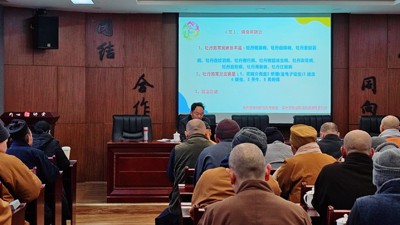 培训过程中,宗教寺庙负责人频频点头,不时提出问题与杨礼通老师进行互动。