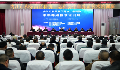 为认真贯彻落实四川省老科协和重庆市老科协川渝科技合作论坛精神,发挥老科技工作者为川渝科技创新服务做出积极贡献,12月12日,内江市和荣昌区两地老科协、科协、农业农村局共同在内江市牛羊产业协会建立“专家工作站”,联合举办牛羊养殖技术培训班和开展技术指导活动。出席培训班和指导活动的有内江市委常委、宣传部长、总工会主席蒋学东,市政府副市长刘波,内江市老科协、科协、农业农村局、内江职业技术学院和荣昌区老科协、科协、西南大学的领导和畜牧老教授、老专家。参加培训班的有内江市各县市区老科协、农业农村局、畜牧中心的领导、老专家,乡镇畜牧兽医员,肉牛肉羊养殖业主,一共350多人。