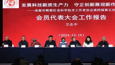 12月19日,成都市郫都区老科学技术工作者协会隆重召开第四届第五次会员代表大会。会议对郫都区老科协2024年工作进行了全面总结,审议通过了会长卫志中所作的题为《发展科技新质生产力,守正创新展现新作为》的工作报告。审议通过了监事长范绍云所作的《郫都区老科协2024年度财务工作报告》。大会总结了区老科协助力乡村振兴人才培训工作,并为跨年度参加农业基础理论及实用技术培训的农民学员代表颁发了结业证书。会上还为市、区两级老科协共建科技支农助农联系点(成都汇菇源科技有限公司)举行了授牌仪式。