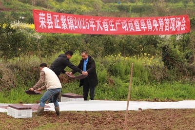 3月21日,荣县老科协组织农业领域的老科技工作者们,沐浴春天的阳光,走进正紫镇坟嘴山村,在“水稻+小龙虾”共作模式旱育秧现场传经送宝,用行动育“希望”,用技术助农增收。