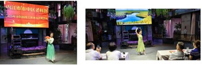 文艺演出以全体合唱《我和我的祖国》掀起首个高潮。诗朗诵《科协之歌》通过铿锵有力的语言,展现了科技工作者之家的温暖与荣光;独舞《探花的蝶》以曼妙舞姿演绎科技探索者破茧成蝶的坚韧历程;抗战题材节目《内江方言·抗战儿歌》表演,带领观众重温了烽火岁月中在中共地下党的领导下,内江科技文化战线通过“内江孩子剧团”表现出高亢的爱国情怀;科普专委原创诗朗诵《祖国颂》以科技视角礼赞山河巨变,城建交通专委的情景合唱《游击队之歌》则以幽默互动点燃全场。