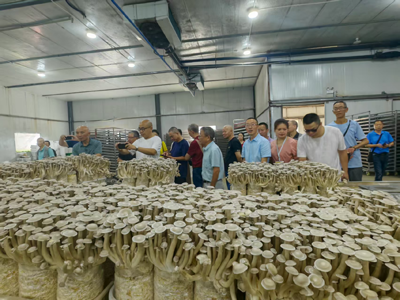 成都汇菇源公司食用菌生产基地是成都市老科协、郫都区老科协的“科技支农助农工作联系点”。在成都汇菇源公司行政主管黄玲带领与解说下,大家参观了食用菌工厂化、智能化、可视化生产线,了解70倍于传统农业亩平效益的工厂化农业,身临其境感受科技创新为现代农业注入的无穷活力,切身体验新质生产力带来的农业非凡效力。
