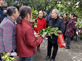 林根成老师首先对国家地理标志产品——“通贤柚”风味独特、营养丰富、抗病性强、市场认可度高等特点作了重点介绍。在实际操作过程中,林老师将优品“通贤柚”的春梢分发给果农,围绕果树高位嫁接的关键技术环节,如接穗选取、砧木处理、嵌芽包扎等步骤,以及嫁接后的管理,如补接、剪砧、除萌、施肥、防病治虫等要点进行讲解,手把手的示范嫁接各步骤和各环节。参会技术人员及果农实操了不同嫁接方法和技巧,大家边学边问,林老师一一解答。随后,林老师还围绕柚树春季土肥水管理、病虫害防治、整形修剪等关键技术向果农进行了培训和指导。