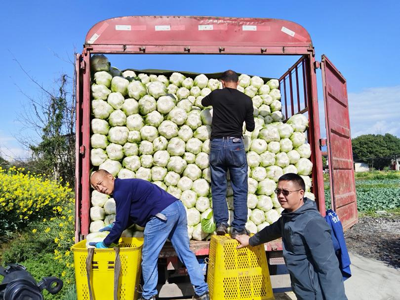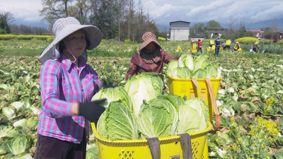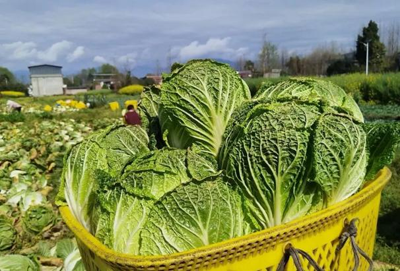 去年十月栽种,今年三月收获,这批寒美黄大白菜经历了秋冬五个多月的生长期。据介绍,寒美黄属进口品种,具有耐寒、耐抽薹、产量高等特点,亩产量在15000斤左右,去年都江堰种植面积达3000亩,与彭州、绵阳等地种植户联合种植还有3000亩左右。
