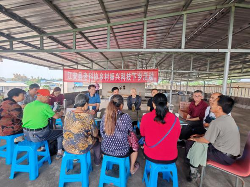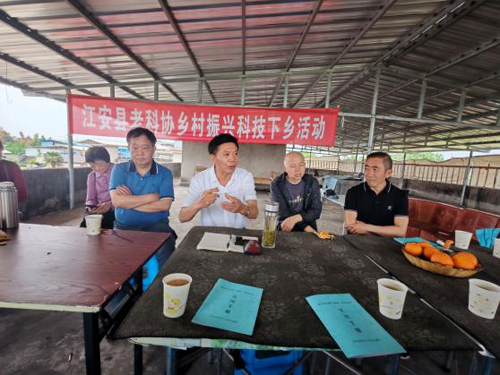 4月17日,江安县老科协到阳春镇双江村古贤坝晚熟柑桔产区开展助力乡村振兴送科技进园活动。县老科协理事会全体成员、农业农村专委会全体会员参加了活动。