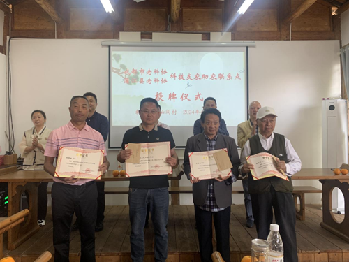 市老科协副秘书长陈祯烈宣读了成都市老科协关于共建《科技支农助农联系点》和成都市老科协《关于表彰2023年度科技支农助农工作先进集体和先进个人》的决定。成都市老科协副会长兼秘书长王宗全和蒲江县老科协会长向蒲江县朝阳湖镇仙阁村授牌。