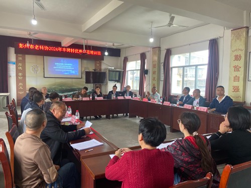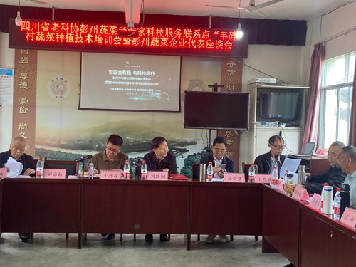 4月24日"四川省老 科协彭州蔬菜老专 家科技服务联系点 "丰碑村蔬菜种植技术 培训会暨彭州蔬菜 企业代表座谈会在彭州市濛阳街道丰碑村举行。
