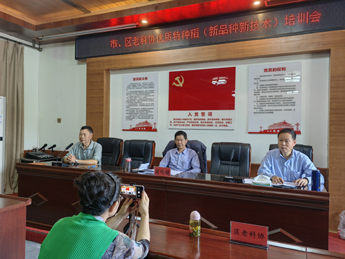成都市老科协三农工委主任吴逢根、农林专委主任刘建华亲临培训现场并作讲话。郫都区老科协会长卫志中、副会长彭富全、马洪春、三农工委负责人余春林等参加培训会议。会议特邀成都市老科协农业老专家、四川农业大学水稻研究所退休研究员周明镜教授作主讲。郫都区老科协副会长彭富全主持培训会。