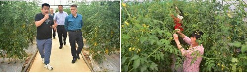 在圣寿村现代蔬菜产业园,调研组一边仔细查看蔬菜的种植情况,一边听取县蔬菜协会会长唐伟的情况介绍。调研组一行与园区工作人员还深入交流种植技术、市场前景等方面的问题。