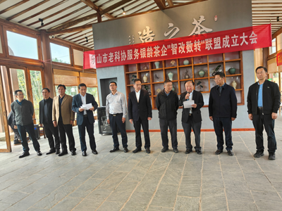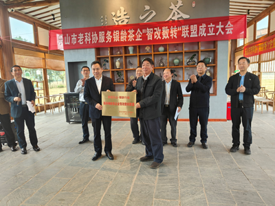 同时,在乐山市老科协服务银龄茶企“智能数转”联盟成立大会上,市老科协会长肖瑶伦向“美丽乐山·银龄行动”服务银龄茶企业智改数转联盟授牌,沐川县老科协副会长、四川一枝春茶业有限公司董事长杨昌银代表联盟企业接牌,并举行“银龄茶”企业座谈会。
