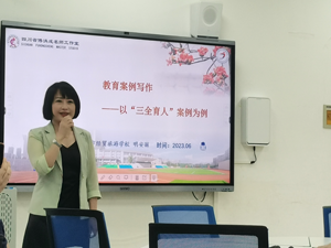 随后,攀枝花市旅游经贸学校明安丽老师作《教育案例写作——以三全育人案例为例》专题讲座,从教育案例的范畴、教育案例的撰写对教师的促进作用、如何写教育案例、教育案例实例解析四个方面,引领工作室成员深入认识教育案例,并学习如何撰写教育案例。
