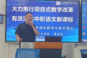 四川省傅洪成名师工作室领衔人、资中县职业技术学校傅洪成老师在《大力推行项目是教学改革,有效落实中职语文新课标》的讲座中,立足课例,对中职语文新课标的“主要内容、主要特点、实施举措”进行了详细的解读。他以项目式教学为例,在项目式课程设计六步和教学实施六步中,聚焦学科素养,推进教学改革,有效落实语文学科课程标准,全面落实立德树人根本任务。