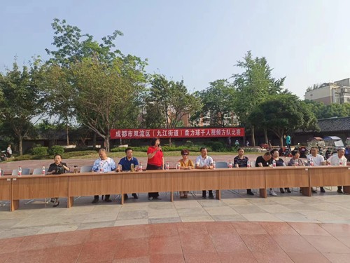 5月22日,四川省“百城千乡万村·社区”全民健身系列赛事活动——成都市双流区第四届老年人社区运动会(九江街道)柔力球千人视频方队比赛在双流区九江街道文化广场举行。参加比赛活动的有双流区柔力球协会会长石淑珍,副会长徐安金,秘书长常晓兰,九江街道老龄委常务副主任、老体协主席杨瑞刚,老龄委副主任、老体协副主席刘顺琼、倪文成、张铈德、陈泽邦,九江街道老年大学副校长、柔力球协会常务副会长宋玉梅、王伟琼等负责人和11个社区老体协主席以及11支柔力球队队员和石井社区老体协军鼓队队员共200多名队员。