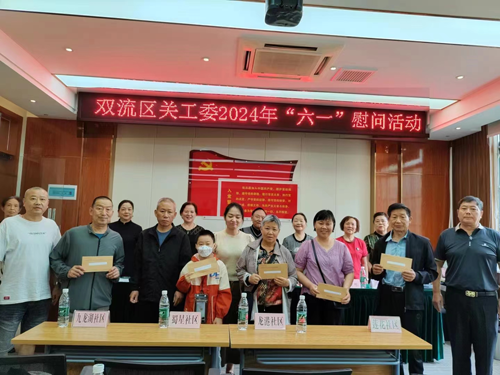 双流区关工委首先代表成都市关工委慰问了徐逸辰等8名儿童,为他们送上了米和油;然后代表双流区关工委慰问了刘沐辰等8名儿童,为每名儿童送上了500元的慰问金。