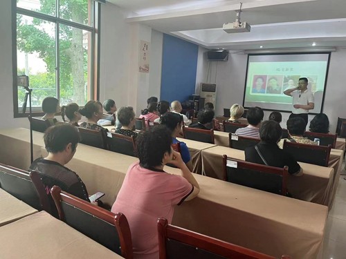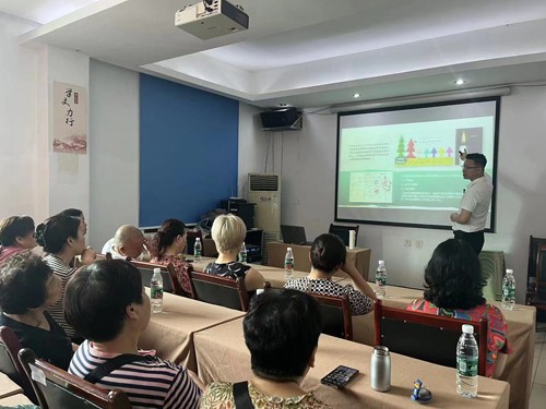 九江街道泉水凼社区老协特邀中医医师赵荣辉为老年朋友健康养生讲座。赵荣辉医生在老年朋友们的热烈掌声中,开始用投影给大家讲授健康养生知识。他首先给大家讲了中老年的每日三餐的营养饮食搭配和起居时间规律;接着赵医生讲了暑天应该注意事情;最后讲老年人常发病的简单急救知识。