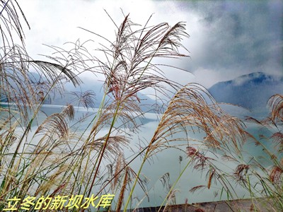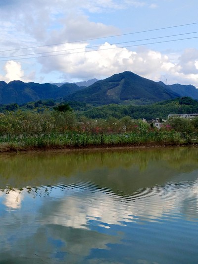 山间一水库, 兰天白云收。