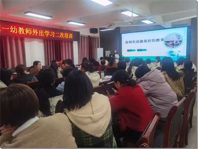 《3-6岁儿童学习与发展指南》强调“生活即教育”,要将课程融入幼儿的真实生活经验。幼儿通过主动探索和体验建构知识经验,生活课程是重要载体。三月,园长刘媛带队4名骨干教师到成都市参加了幼儿园自主生活教育培训。为推动生活化课程在全园落地,特组织了二级培训。