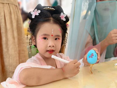 随后,铿锵的锣鼓声震响全场,一场活力四射的传统舞狮表演瞬间点燃节日热情,正式拉开游园狂欢的序幕。家长与孩子们身着飘逸雅致的汉服,穿梭于精心布置的园区,仿佛步入时空长廊,沉浸式体验中华文化的博大精深。
