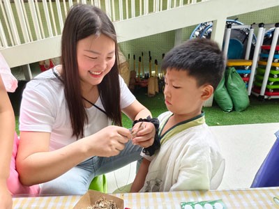 本次游园共设置了22项丰富多彩的传统民俗活动,处处洋溢着参与的热情与收获的喜悦。“巧手传承”:亲子合作包粽子,细嗅艾草制香囊、扎花束,一针一线编织祝福;“民俗竞技”:“射五毒”驱邪纳吉,旱地“划龙舟”劈波争先,在趣味竞技中感知节气智慧:“古韵体验:投壶、编彩绳、制龙舟、写福字、猜灯谜等多种活动。孩子们在亲身体验与动手实践中,触摸到了端午节习俗的深厚底蕴,感受到了中华优秀传统文化的永恒魅力。