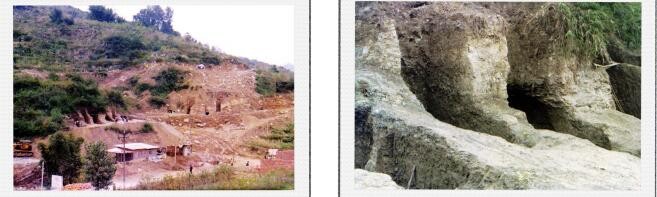 2000年9月30日,我在挖掘现场拍摄的场面,其中挖到有两枚小铜钱。右图画面中穿蓝色衣服、拿草帽的人是珙县文化馆人员范仲成。