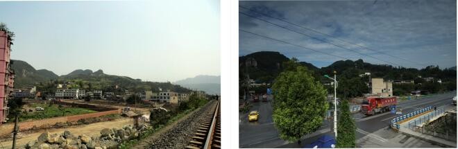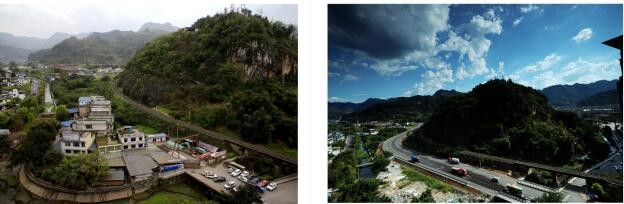 S436巡玉路珙县人民武装部对面那段公路,依次摄于2021年11月11日和2022年6月8日改造建设完成的场面。