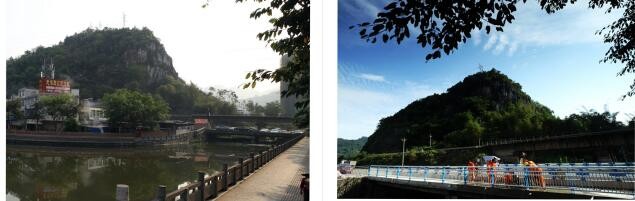 图(1)→2012年3月25日,未建公路桥的场面;图(2)→2022年7月23日,S436巡玉公路提升改造建成公路桥通车的场面。