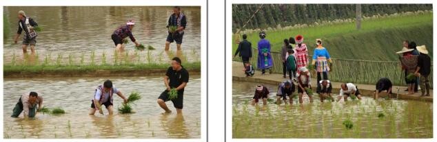 人工插秧形式曾经引来十里八乡人们的围观