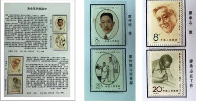 目前,有据可查的父子邮票仅三组,1987年4月23日发行的“廖仲恺诞生一百一十周年”邮票(J137)和1988年9月25日发行的“廖承志诞生八十周年” 邮票(J153),是世界上第一组父子邮票,廖氏父子可谓独领了邮票风骚。