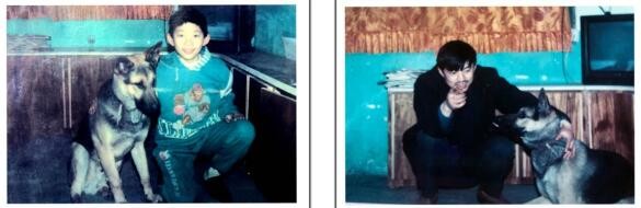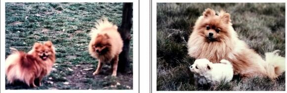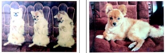 丑丑喜欢照像,也可以任人摆布,叫它站直好照标准照,刚一松手退开拍摄,它就开始耍赖下滑,左图是我用胶卷相机抓拍的三张照片的组合,右图是它神情专注地留影。