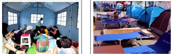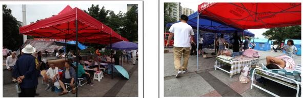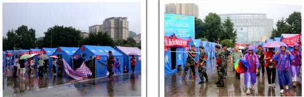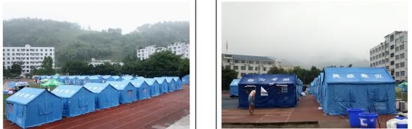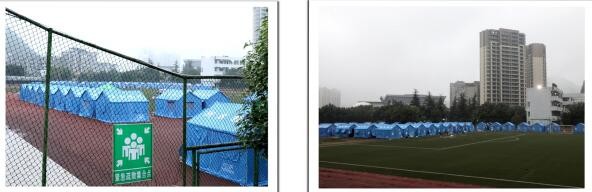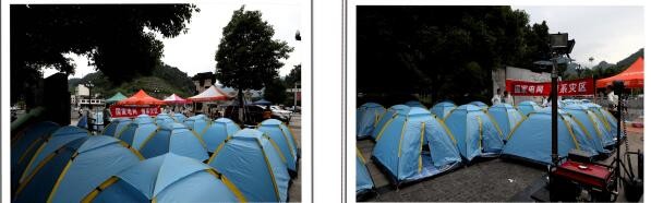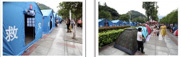 左图→珙县教育和体育局临时安置点;右图→珙县联通公司抗震救灾安置点。
