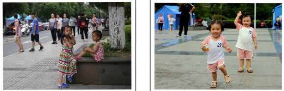 在巡场大道边、僰文化广场的小朋友照样玩耍