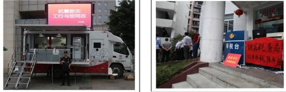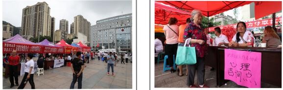 珙县司法局、珙县总工会、珙县社会工作者协会在广场设置抗震救灾咨询服务点