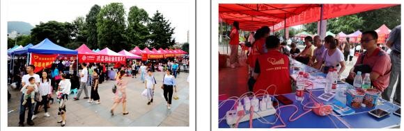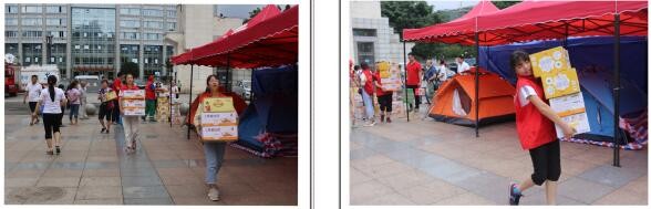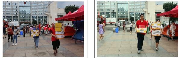 中国联通公司珙县分公司在僰文化广场免费提供饮用水、代充话费服务。