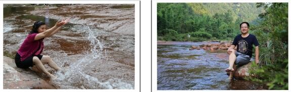 小娃咡些就是这样喜欢整鱼 大人们就是这样坐在河边脚踏着水