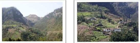 我上山下乡到珙县玉和公社五同一队从沟里头向外看的地形(左)、从沟外面向里看的地形(右)。