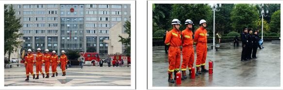 2019年11月9日,在珙县僰文化广场举行的消防演练场面。
