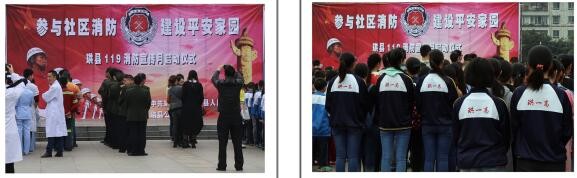 2015年11月9日,在珙县僰文化广场举行的“参与社区消防、建设平安家园”珙县119消防宣传月启动仪式,其中,有珙县第一高级中学的学生参加。