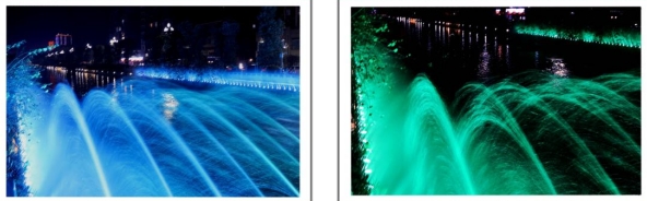 伴随着优美的音乐和变化的灯光一簇簇水花也变换着颜色
