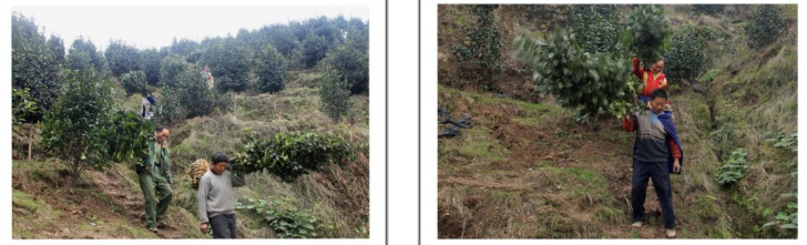 2010年11月30日花海建设者们在山坡上肩扛茶花树场面
