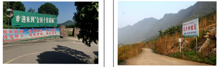 花海路边的“全国十佳苗圃”标志 花海路边的“花卉种植区”的标志