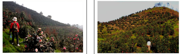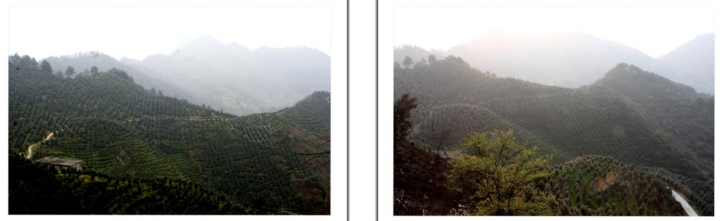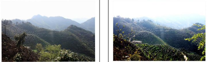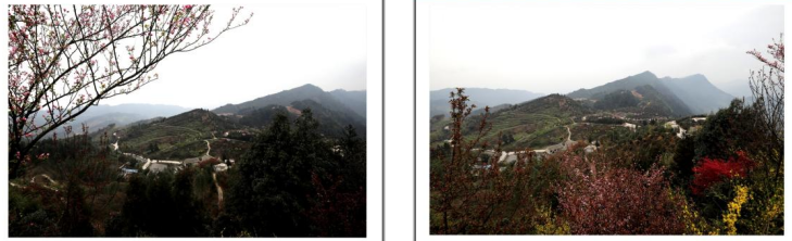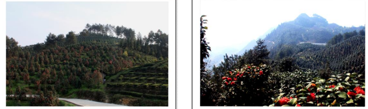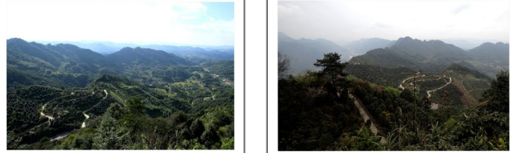 在最高处观景台向南方向看到漫山遍野的茶花林