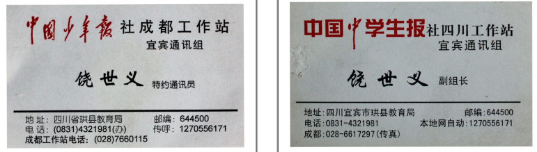 报社为我制作的《名片》,那时都使用名片没有用《采访证》,《中国少年报》《中国中学生报》是报社专用标志,广告公司是没有的,也是不能擅自使用的。