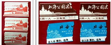 北京石景山游乐场的玩耍票据和其他参观门票