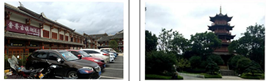 奢香古镇的古塔述说着小镇遥远的昨天深厚历史,“奢香古镇烟酒店”前的汽车诠释了小镇的今天繁荣兴盛。