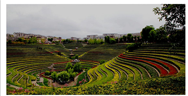 奢香古镇有块人工打造的梯田,被称为古彝花海梯田,颇具生态园林景观的特色,它是全国唯一的城中花海梯田,种植有菊花、玫瑰花……让游客能体验乡村田园生活的精彩。