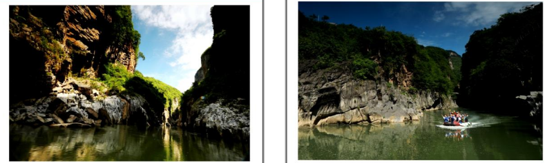 是造物主的神奇,把美丽的果哈峡留给了人间,果哈峡就是地质运动把威信、镇雄两县交界的喀斯特山脉撕开的一条裂缝,从峡谷中往天上一看,果哈峡就是一条倒映在水中的华容道。如果谷口体现的是水的柔美,那谷里面最吸引我们眼球的就是山的雄秀。其实,这里是山与水的灵动,山与水也是一幅不可分割的画卷!